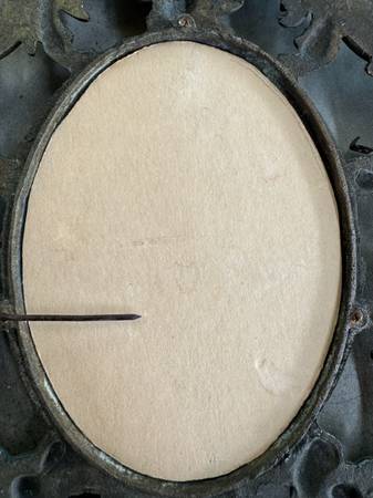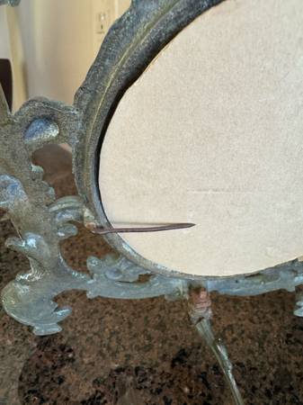 Vintage picture frame . Think it would fit a 4x6 picture. Missing 2 picture holder spikes on back but the one in the pictures still holds picture securely because of the backing holding it in place.