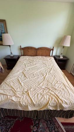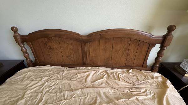 Solid wood headboard with a classic design (60inWx2.25inDx40.5inH). Also, comes with a Queen bed frame, mattress, and box spring.