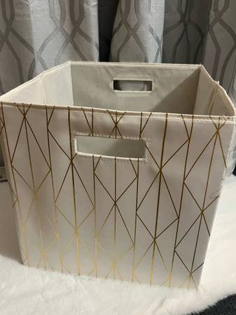 Collapsible Storage Bin White w/ Gold Triangle/Diamond Shapes Multiple Uses Small Thread Loose