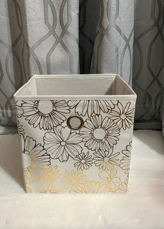 Collapsible Storage Bins White w/ Gold Flowers Tan w/ White French Design Very Sturdy