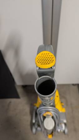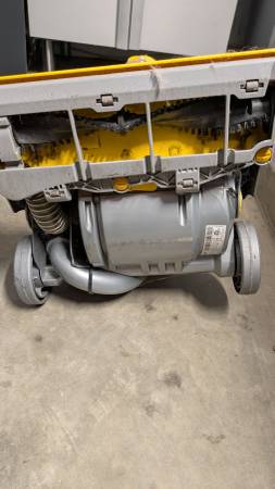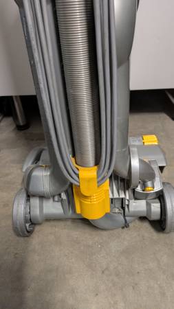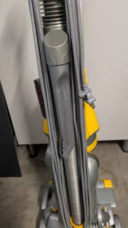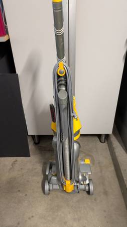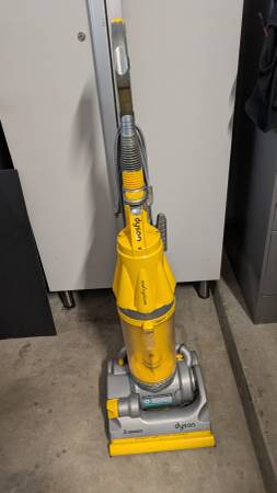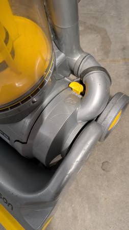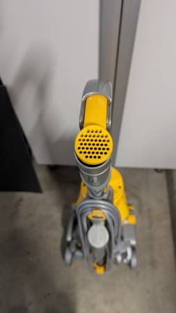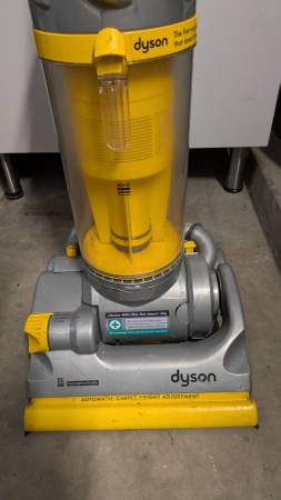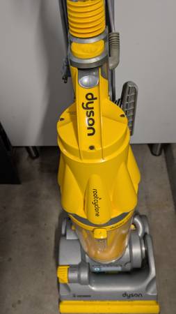 For sale is a used Dyson DC 07 Yellow Vacuum with a good working motor. The Dyson is a bagless "cyclone" technology that can be used on bare floors or carpet. The cannister is easily removed and has a "trap door" for dumping into a trash bag. The wand can be removed and attached to the hose for dusting and has the small floor attachment and crevice attachment. The brush attachment is missing but can be found online. One of the removable parts is missing the clip and is attached with a zip tie but works just fine. There are marks from being used - see photos for details.