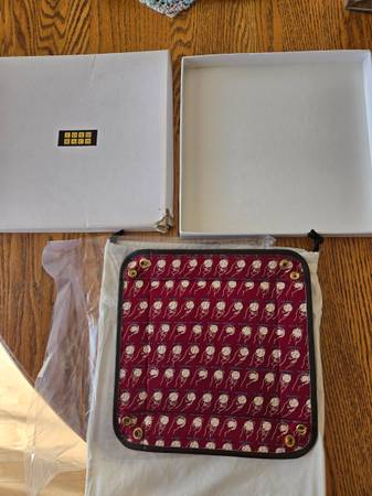 New leather catchall, valet tray with baseball pitches shown. Made by Josh Bach. Box has wear on one corner.