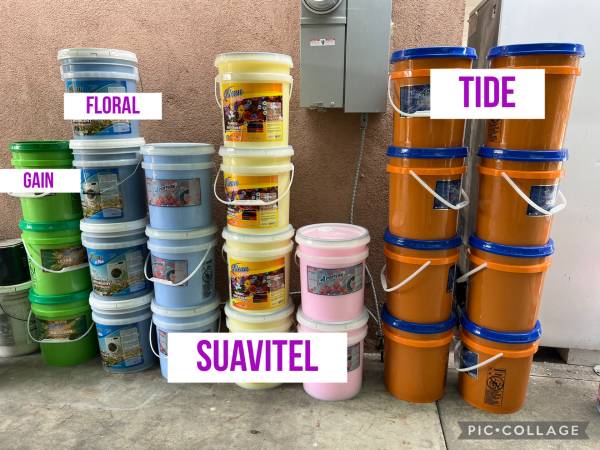 Jabon para lavar cubeta de 5 galones a $37 Bucket of 5 gallons of detergent for $37 Caja en $40 Box for $40