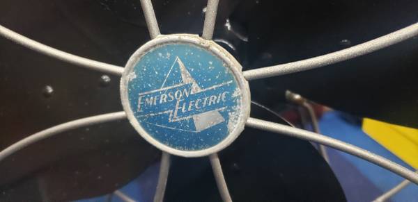 3 speed Emerson early 1950s era large table (or wall mountable with holes in base) adjustable oscillating (can be adjusted to stand still basically to swing a decent distance) fan.