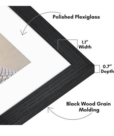 #914 New Americanflat Engineered Wood 16x16 & 12x18 Black Photo Frames Bundle with Polished Plexiglass for Wall