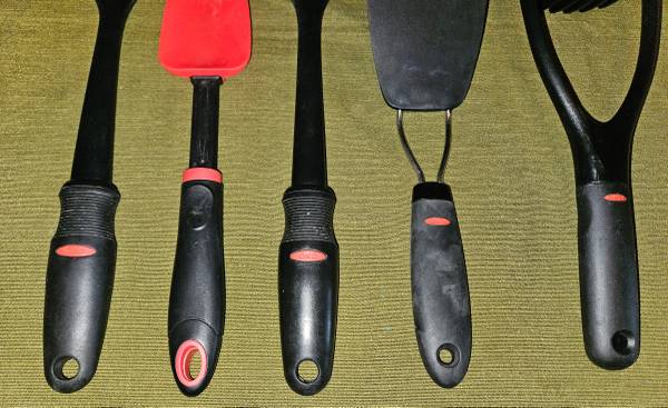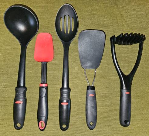 Four of the five are brand OXO. Includes; ladle, cookie spatula, slotted serving spoon, flipping spatula & masher. Retail value of $60. 6017 Cross posted. NO HOLDS! If you'd like to pay in advance and pickup later, Venmo or Zelle, that is an option. Cash is still accepted. IT'S NOT SOLD UNTIL PAYMENT IS RECEIVED!