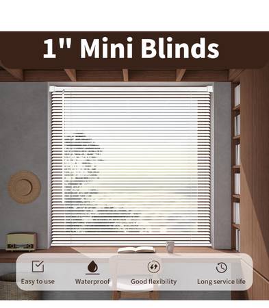 914B New 1" Cordless Mini Blinds 46" W x 48" H, White Vinyl Blinds, Horizontal Light Filtering Blinds, Window Blinds for Indoor Windows, Office, Kitchen, Bathroom and Living Room.