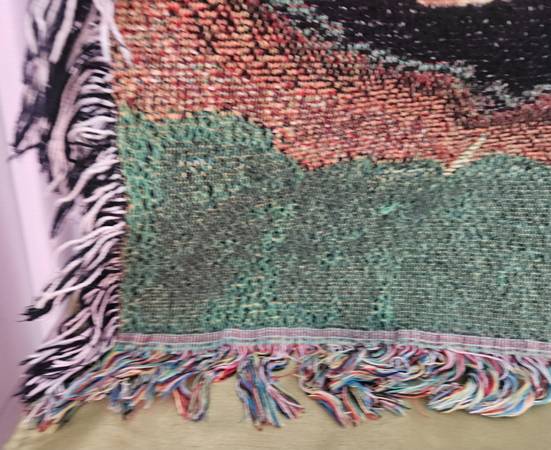 Measures 46" x 54". Has one small spot on area of blanket (see last photo). Trim around blanket has been cut in some areas. Can trim evenly. 5962 Cross posted. NO HOLDS! If you'd like to pay in advance and pickup later, Venmo or Zelle, that is an option. Cash is still accepted. IT'S NOT SOLD UNTIL PAYMENT IS RECEIVED!