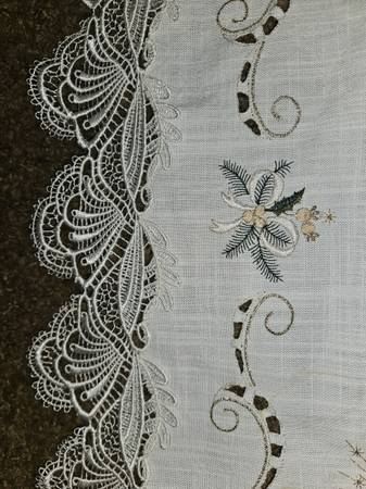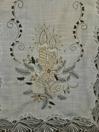 Embroidered cut out all the way around. Measures 17" x 36". Has a few small markings in one corner. See last photo. 6583 Cross posted. NO HOLDS! If you'd like to pay in advance and pickup later, Venmo or Zelle, that is an option. Cash is still accepted. Shipping available if you pay postage. IT'S NOT SOLD UNTIL PAYMENT IS RECEIVED!