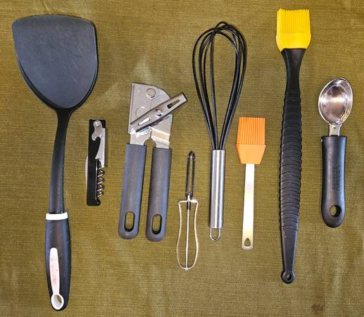 Includes; spatula, corkscrew, can opener, peeler, whisker, two different size basters & one ice cream scooper. 6014 Cross posted. NO HOLDS! If you'd like to pay in advance and pickup later, Venmo or Zelle, that is an option. Cash is still accepted. IT'S NOT SOLD UNTIL PAYMENT IS RECEIVED!