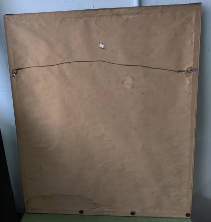 There is one small nick on the back of the frame, in the upper right hand corner. See last photo. The frame measures 25.75" across, 29.75" tall. The actual picture measures 18.75" x 22.75". weighs about 8 pounds. Cross posted. NO HOLDS! If you'd like to pay in advance and pickup later, via Facebook Pay, Venmo or Zelle, that is an option. IT'S NOT SOLD UNTIL IT'S PAID FOR!