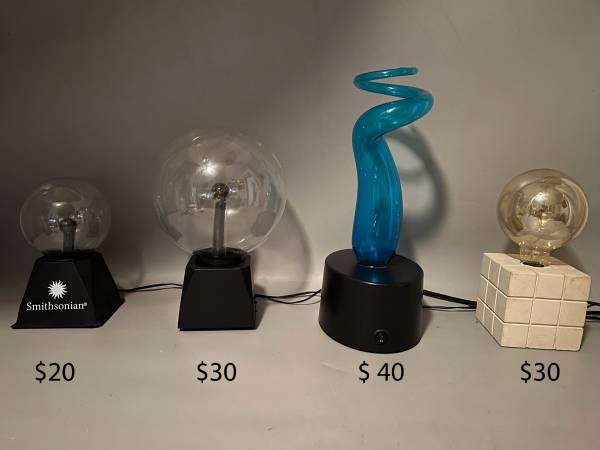 1. Smithsonian Plasma Sphere 5" Interactive. Touch & Sound Response........ $20 2. Zigazaga Plasma Nebula Sphere 8" Interactive. Touch & Sound Response. $30 3. Lumisource Twisted Plasma...