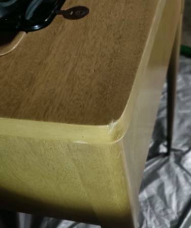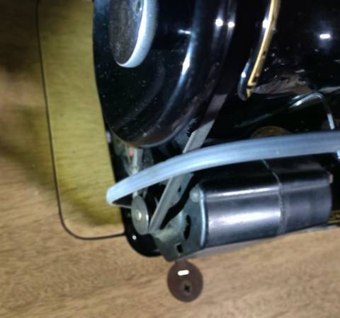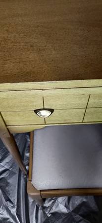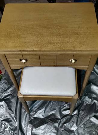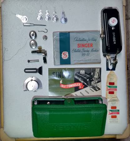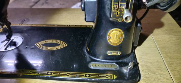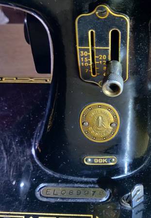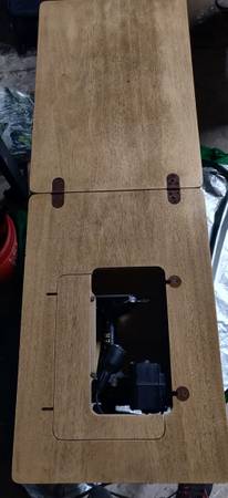 The machine works well. All manuals and accessories in my photos. I believe it's called a white oak cabinet. Even has a button stich attachment. Local sales /pick up only. Text only: SEVEN14 SEVEN28...