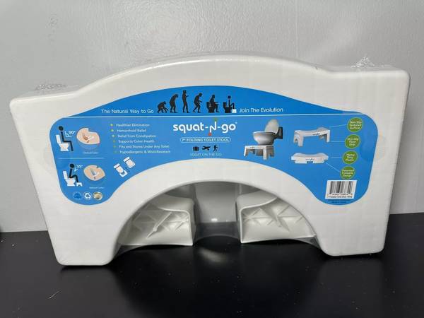 Squat N Go Folding Squatting Stool - 7" Folding Toilet Stool - White