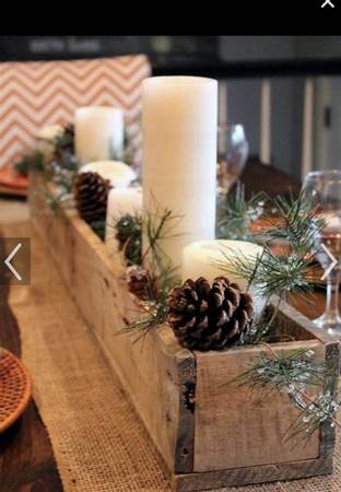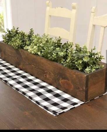 Decorative for center piece or by itself. Wooden. 36 x 7 1/2inches x 3, custom made. Attached photos show suggestion what can be done with it. Or can be flowers. Change with seasons. First photo is...