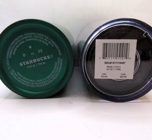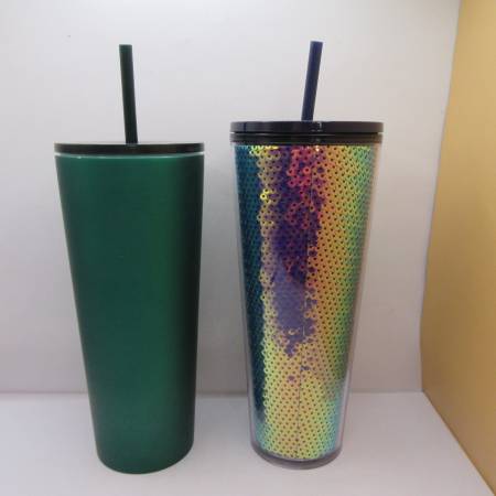 For sale there are two used Starbuck tumblers. Both are used but in good condition. There is a very small chip in the green tumbler near the top. Please see photos for more details and to assess the condition yourself. Also be sure and check out the other items I have for sale. Thank You.