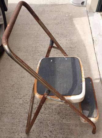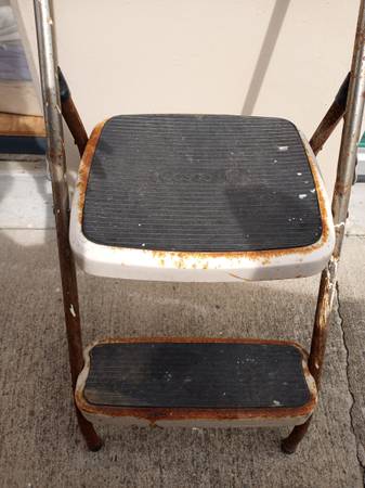 Solid sturdy condition, although clearly rusted. Could be used for great DIY project. Measures 29" tall and 14" x 20". First step is 9" from the ground and upper, second step is 17" from the ground. 1715 Cross posted. NO HOLDS! If you'd like to pay in advance and pickup later, Venmo or Zelle, that is an option. Cash is still accepted. Shipping available if you pay postage. IT'S NOT SOLD UNTIL PAYMENT IS RECEIVED!