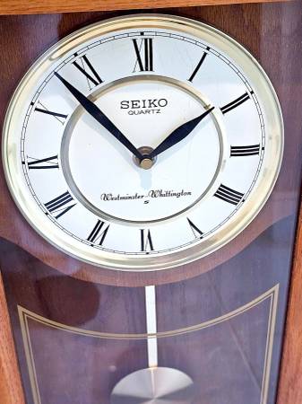 UNUSED VINTAGE LATE 1960'S EARLY 1970s SEIKO WESTMINSTER WHITTINGTON QUARTZ PENDULUM WALL CLOCK QXH011BLH.