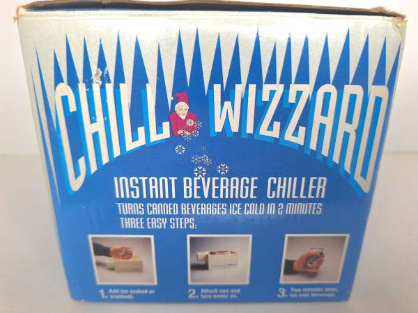 The Chill Wizard Instant Beverage Chiller turns a twelve ounce canned beverage ice cold in two minutes.