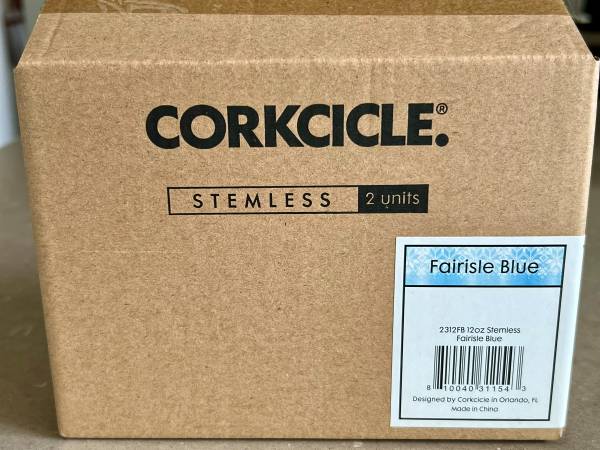 Brand new, set of 2 Fairisle blue 12-oz stainless steel tumblers with sliding, shatter-proof crystal clear lids. Triple-insulated; keeps beverages cool for 6 hours, hot for 3 hours. Stay-put...