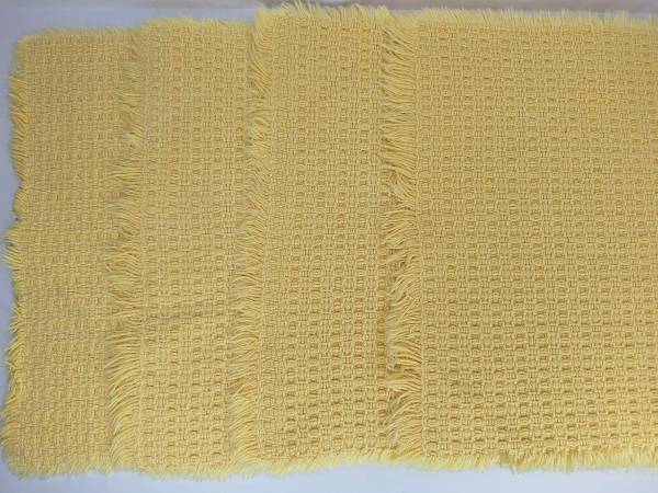 Set of four (4) woven yellow placemats with fringe. Approximately 11” x 16” each.
