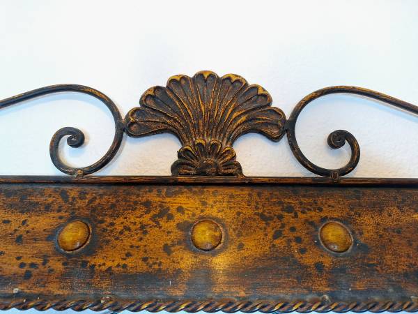 Large wrought iron frame ready to hold a large piece of art. The back of the frame features cast metal clips to hold art in place and hang on a wall.
