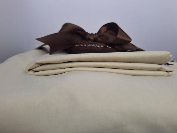 King fitted sheet and king pillowcase. The fabric is outstanding: it is easy care and stays smooth and fresh. Can be put with a tan, brown or white flat sheet. The Japanese made trinket dish is perfect for gathering small items on your bedside table.