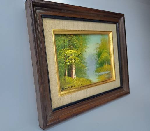 An original oil on canvas by artist B. Cooper. The canvas depicts a rich autumnal wooded location with a river flowing through it. Signed to the lower left hand side. Presented in a decorative wood frame, trimmed in gold with a linen liner.