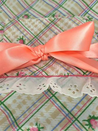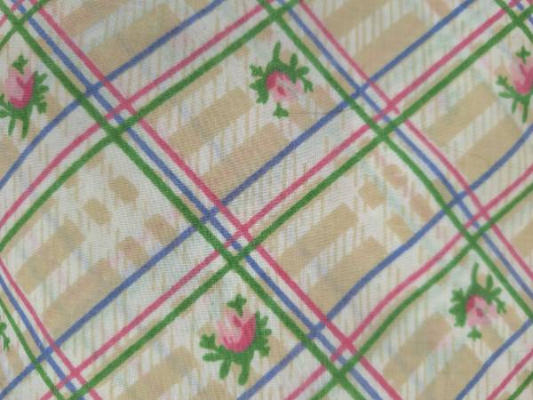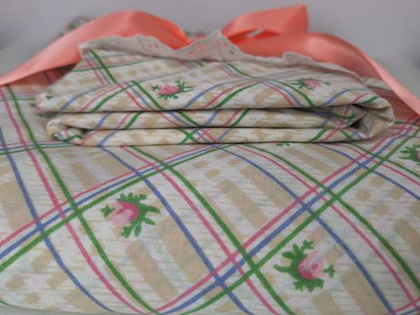 RARE Utica by J.P. Stevens rose trellis spring plaid twin fitted sheet and eyelet trim matching pillowcase. From the 1970s.