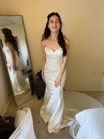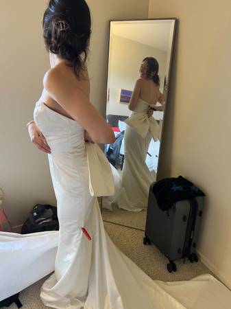 I decided to wear a ball gown instead of a fitted dress, so I am selling this one! It has never been worn and still has the original tags on.