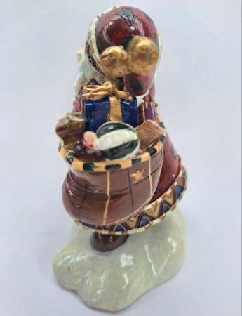 Festive and functional, this St. Nicholas figurine is the perfect way to celebrate the season. Featuring Santa holding a brown sack with gold stars, full of toys, this stunningly detailed piece will be a focal point of any holiday décor. Amply sized, this charming figurine is ideal for the Christmas season. Beautifully crafted, hand painted, and ready for gifting.