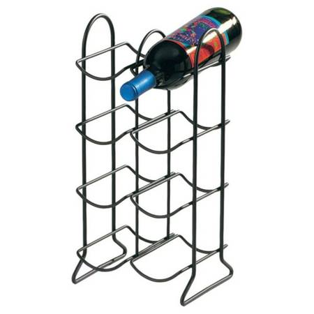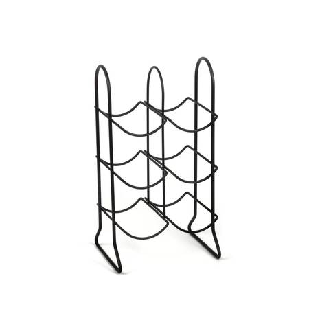 The compact design of this vertical 6-Bottle Wine Rack makes it easy to store a modest collection of wine using only 8" of shelf, cabinet or countertop space. The black powder-coated steel wire resists rust and is at home in any décor.