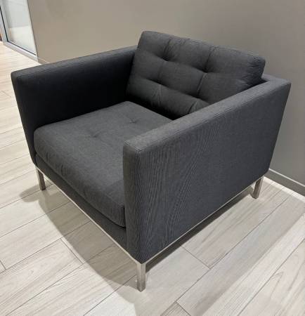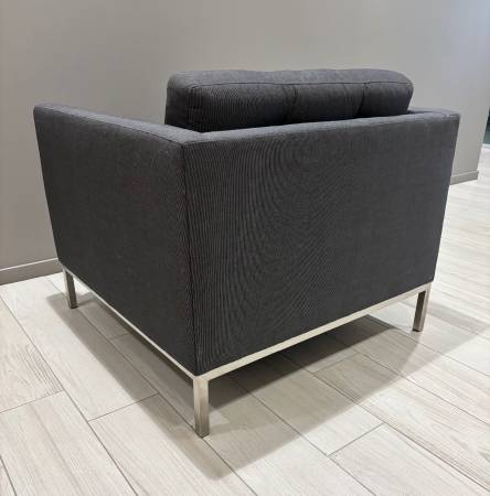 Room and Board “Shenandoah” Side Chair, Color Charcoal Grey with Stainless Steel Frame, No Rips or Tears, Like New, Excellent Condition, Pet/Smoke Free Home, $300.00, OBO, Please Call