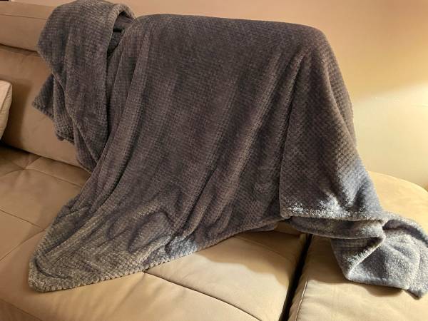 Brand new, soft and fluffy. Aqua, or pale teal color. Waffle pattern. Queen size 70x80 inches.