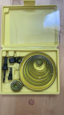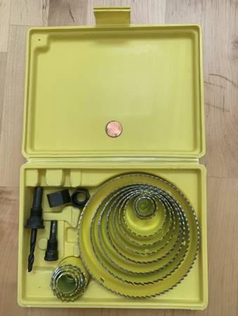 Brand new 17 pcs steel hole saw drill kit in original case, for door lock installation and more.