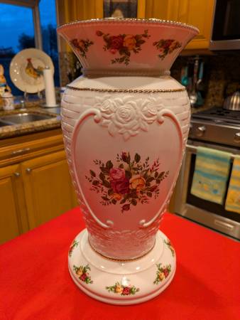 Gorgeous NEW beautiful large Royal Albert "Old Country Roses" Basket Weave 14" vase. NO BOX. STUNNING PIECE and DISPLAY!!!