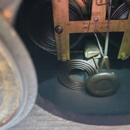 Marked 1903 and maker's name on the back of the mechanism. Face has maker's name at the bottom.