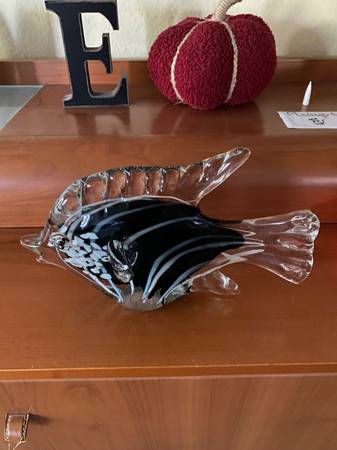 All glass decorative fish made of blue, white and clear glass. 10” wide x 6” high. Lovely piece that goes anywhere!