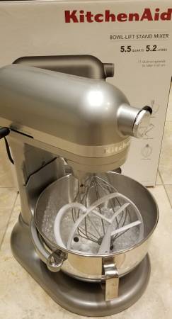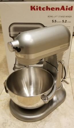 Brand New in Box KitchinAid Bowl-Lift Stand Mixer 5.5Qt w extras, never used, took out for pictures only.