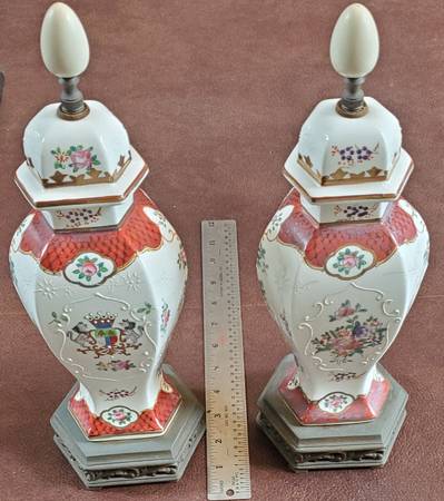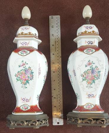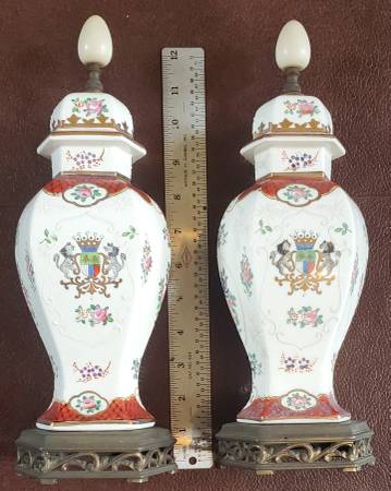 Pair of Antique Japanese Armorial Vases on Bronze Bases - household...