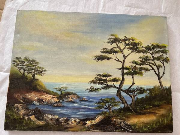 Monterey Cyprus & Sea View Oil on Canvas Genuine Original Art 11” x 14”, unframed as depicted. This is an original piece of art I acquired in Monterey California about 20 years ago. It is signed...