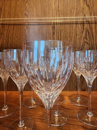 Beautiful set of cut crystal stemware. Each piece features a classic fluted design with sparkling vertical cuts that catch the light beautifully. Perfect for entertaining, holidays, or everyday sophistication.