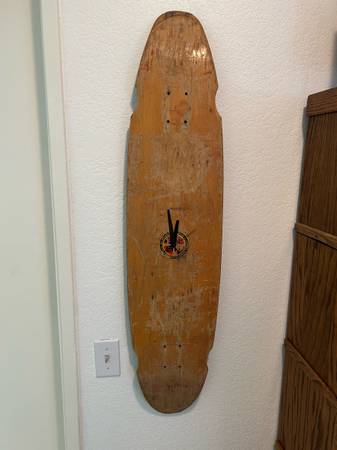 $20 each Skateboard deck clock. Long board skate board clock is 44 inches long by 10 inches wide. The broken deck is 20 inches long by 9 inches wide. The clocks work good and there is hardware on...