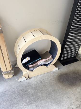 Keep your feline happy, healthy, and entertained! This adorable cat treadmill wheel is in pristine condition and comes fully assembled – no hassle, just set it down and let your kitty explore. Perfect for high-energy cats who need extra play and exercise indoors.