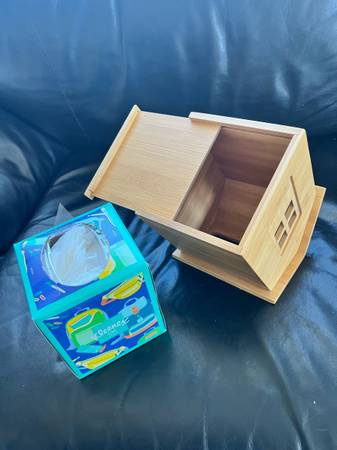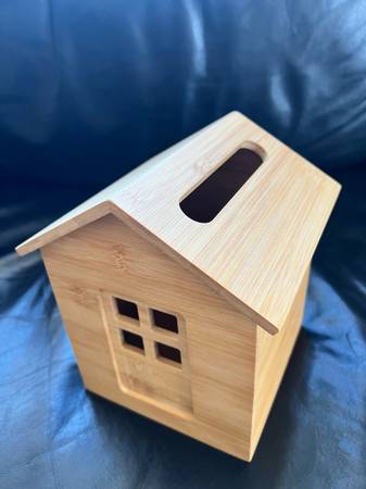 Unique House-Shape Bamboo Tissue Box Cover/Napkin Holder for Easy Refill (new)