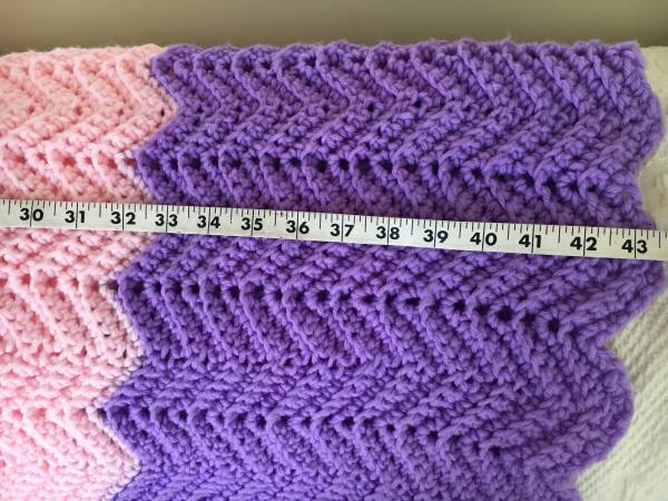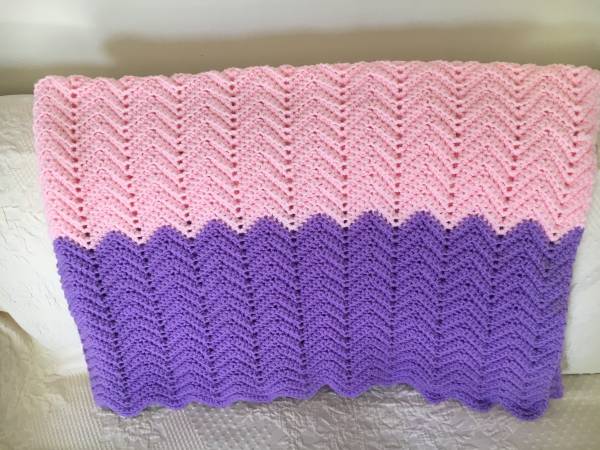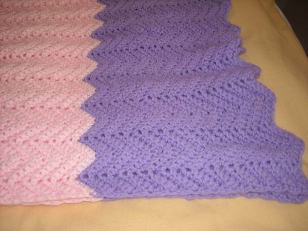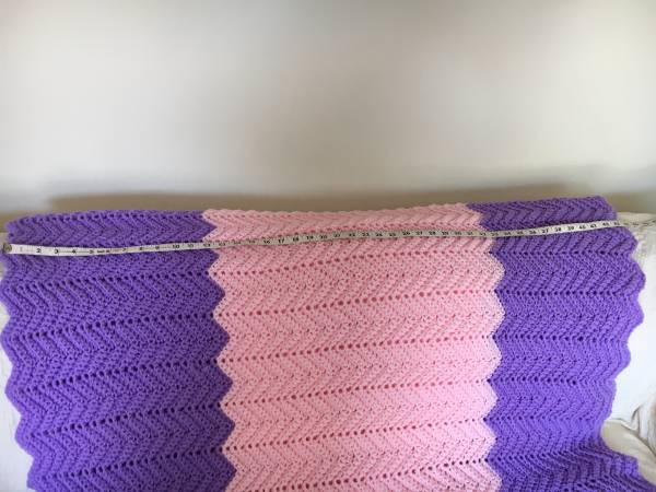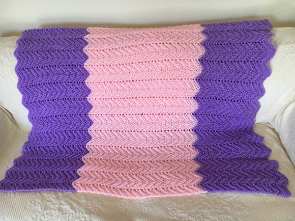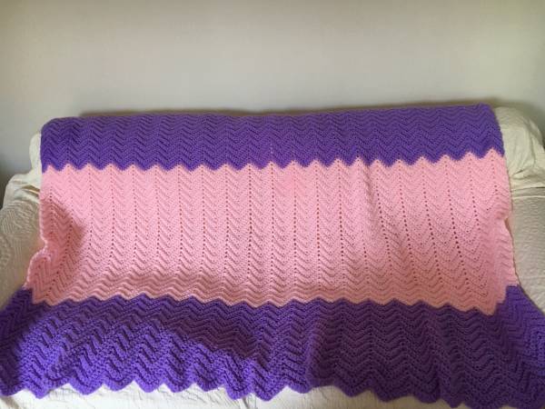 Vintage 1980s, Hand Crocheted Afghan, Pink and Lavender - $30