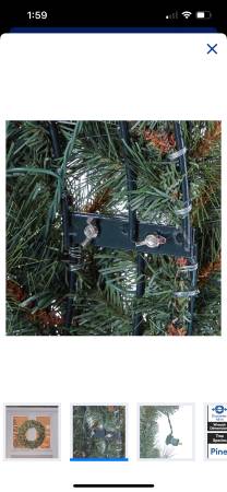This is a great holiday wreath that’s been used 1 year. It’s a 48” Pre-Lit Scottsdale Pine Wreath, the pictures tell the story, take it home today!!