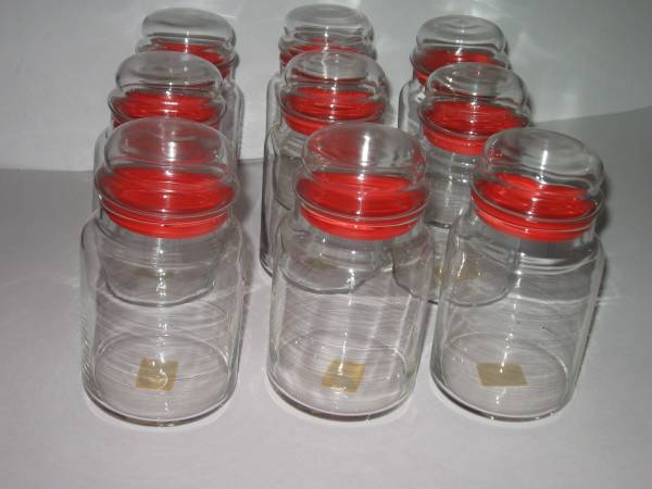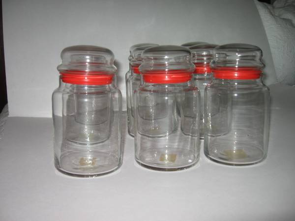 Set (9) Apothecary Glass Jar Canisters w/ Stopper Lids - household...