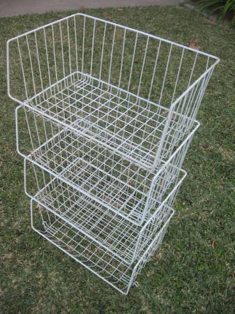 Stacking Closet Organizer Storage (4) Stacking Interlocking Wire Baskets Each measures 15.5 inches wide x 10 inches deep x 7.5 inches tall $20 CASH – if interested, call Lenette @ – we will only...