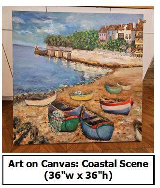 One-of-a-kind large painting of a waterfront village with boats brought ashore. Never displayed. $100